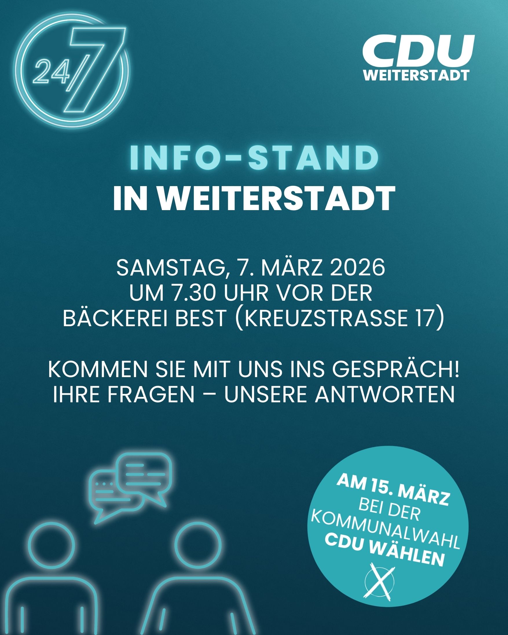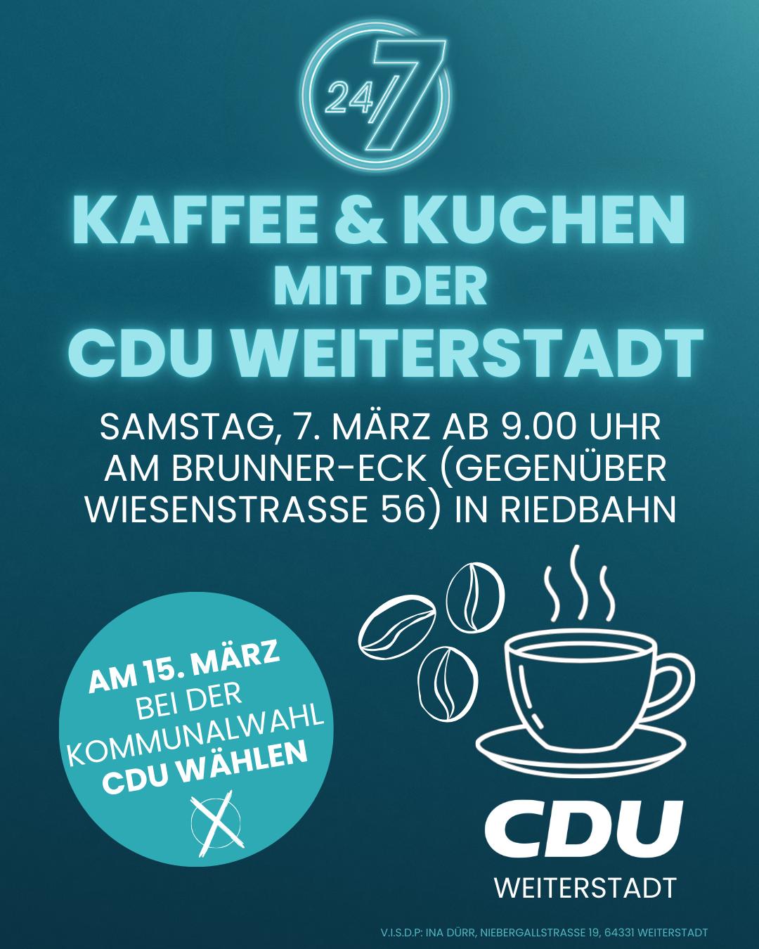 Drei Tage vor der Bürgermeisterwahl und 71 Stunden vor Schließung der Wahllokale lädt CDU-Kandidat Sebastian Sehlbach zu „Zwiebelkuchen & Federweißer“ am Donnerstag, den 25. September 2025 um 19:00 Uhr in die Gaststätte „Zur Schönen Aussicht“ (Bahnhofstraße 18) in Weiterstadt ein. An diesem Abend können Bürgerinnen und Bürger in entspannter Atmosphäre mit dem Kandidaten ins Gespräch kommen.