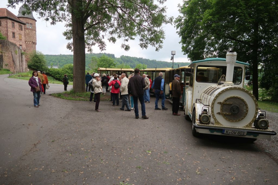 In Wertheim am Main fand zunächst eine Rundfahrt mit dem Burgbähnchen mit kombinierter Stadtführung durch die historische Altstadt statt. Im Anschluss ging es hinauf zur Burg Wertheim, die noch als Ruine einer Höhenburg auf einer hohen, schmalen Bergzunge zwischen den beiden Tälern von Main und Tauber oberhalb der Stadt Wertheim erhalten ist.